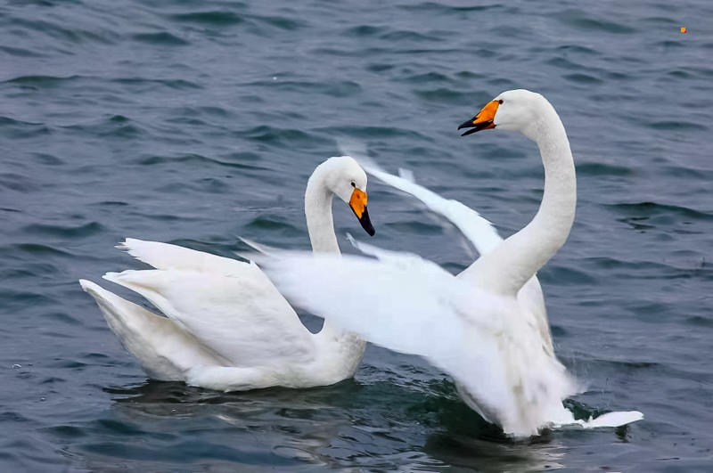 天鹅翩翩起舞,水面波光粼粼