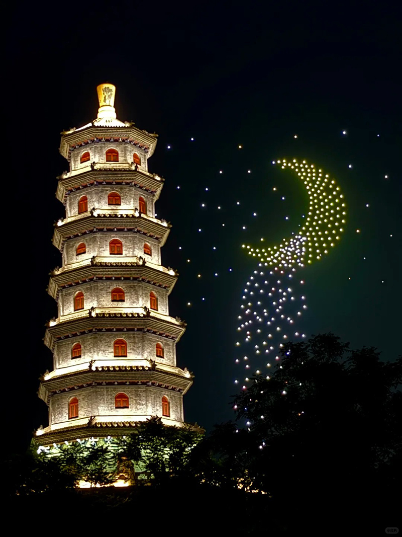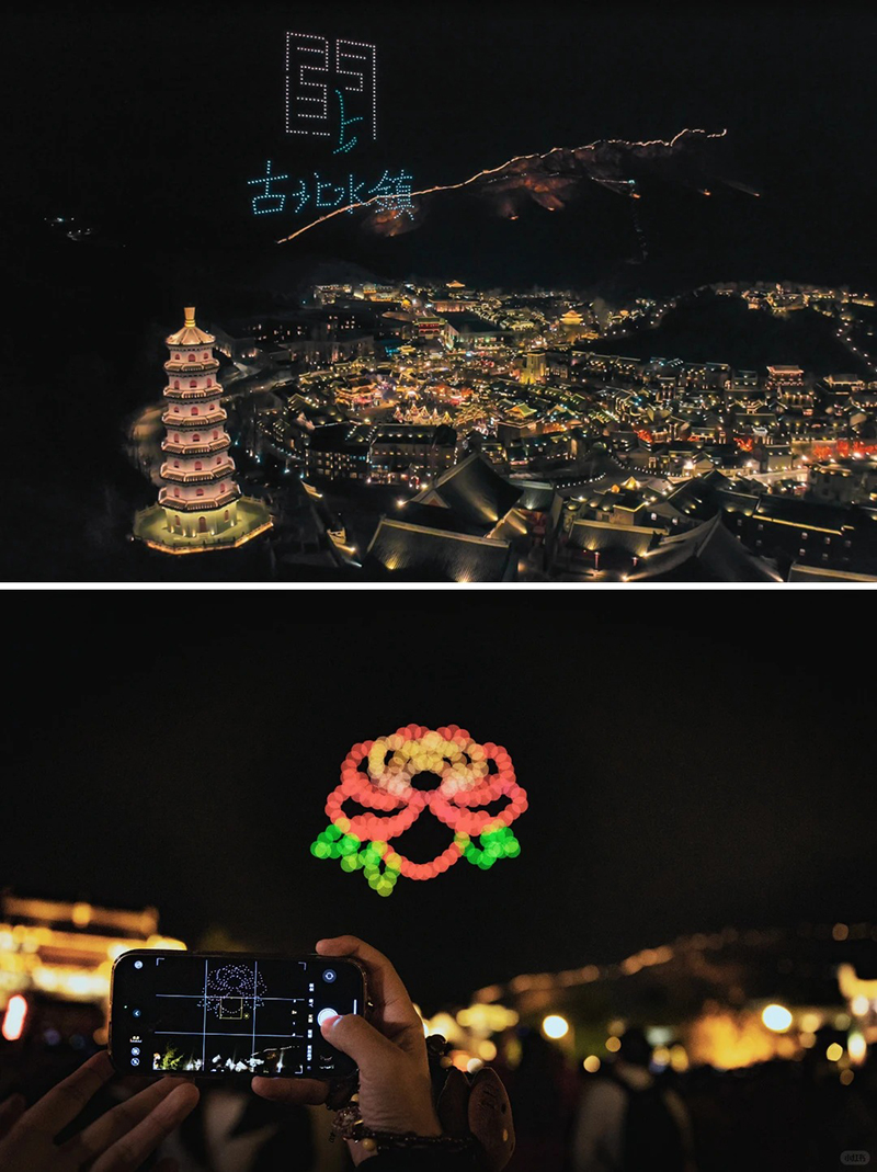 推荐夜游古镇路线:【长城夜景】-【音乐喷泉】-【山顶教堂】-【日月岛】