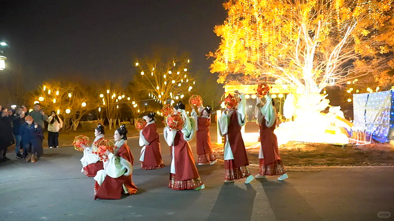 本届灯会精心构建“观赏+互动+娱乐+消费”全链条体验场景,超100席商业配套同步上线,每天超60场演出轮番登场,天津快板、京韵大鼓等传统曲艺韵味十足,现代歌舞、创意杂技燃动全场,还有机甲巡游、街头魔术等潮玩项目。
