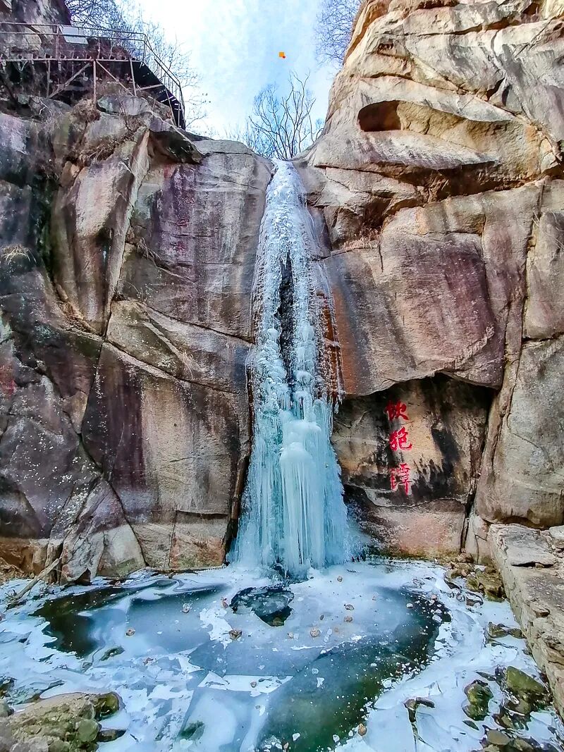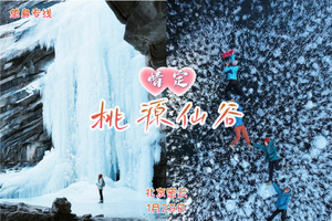 桃源仙谷属于云蒙山地域,植被茂密,潭瀑众,有一湖六瀑十三潭及一泉四池等景观,每到冬季,峡谷内的瀑布以及有落差的溪流就结成形色各异的自然冰雕。这里不仅有瀑宽几十甚至达百米的北京最大的人工冰瀑,更有很多瀑宽不等的自然冰瀑。