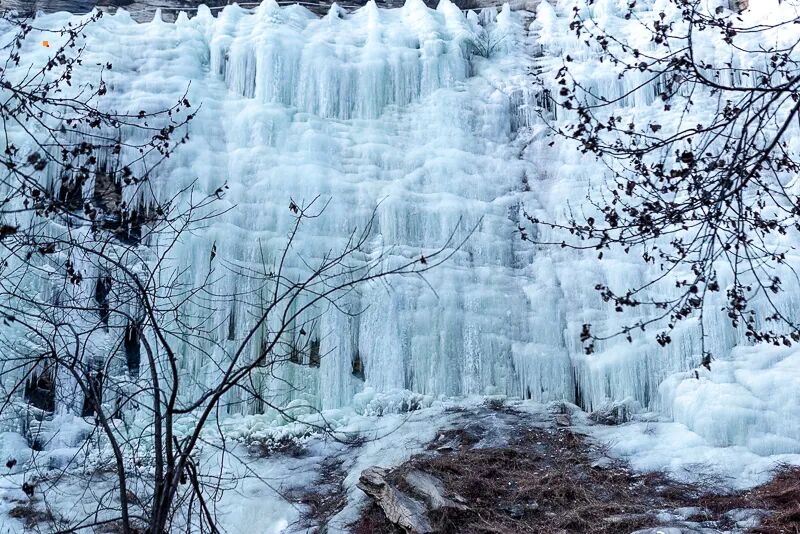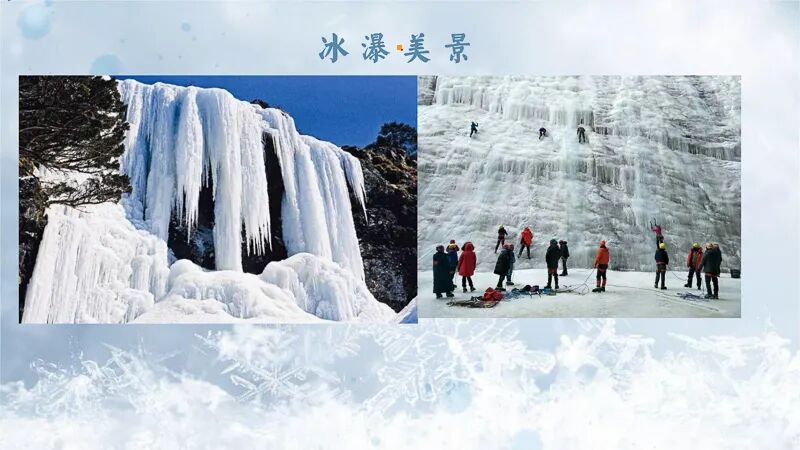 尽管是冬季,这里依然泉水不断。 厚厚的冰瀑之内,能够听到和隐约看到流动的泉水。夏季水大时,峡谷里甚至进不了人。桃源仙谷以其得天独厚的条件,变身为冬天特有的极富挑战性和刺激性的运动场地。