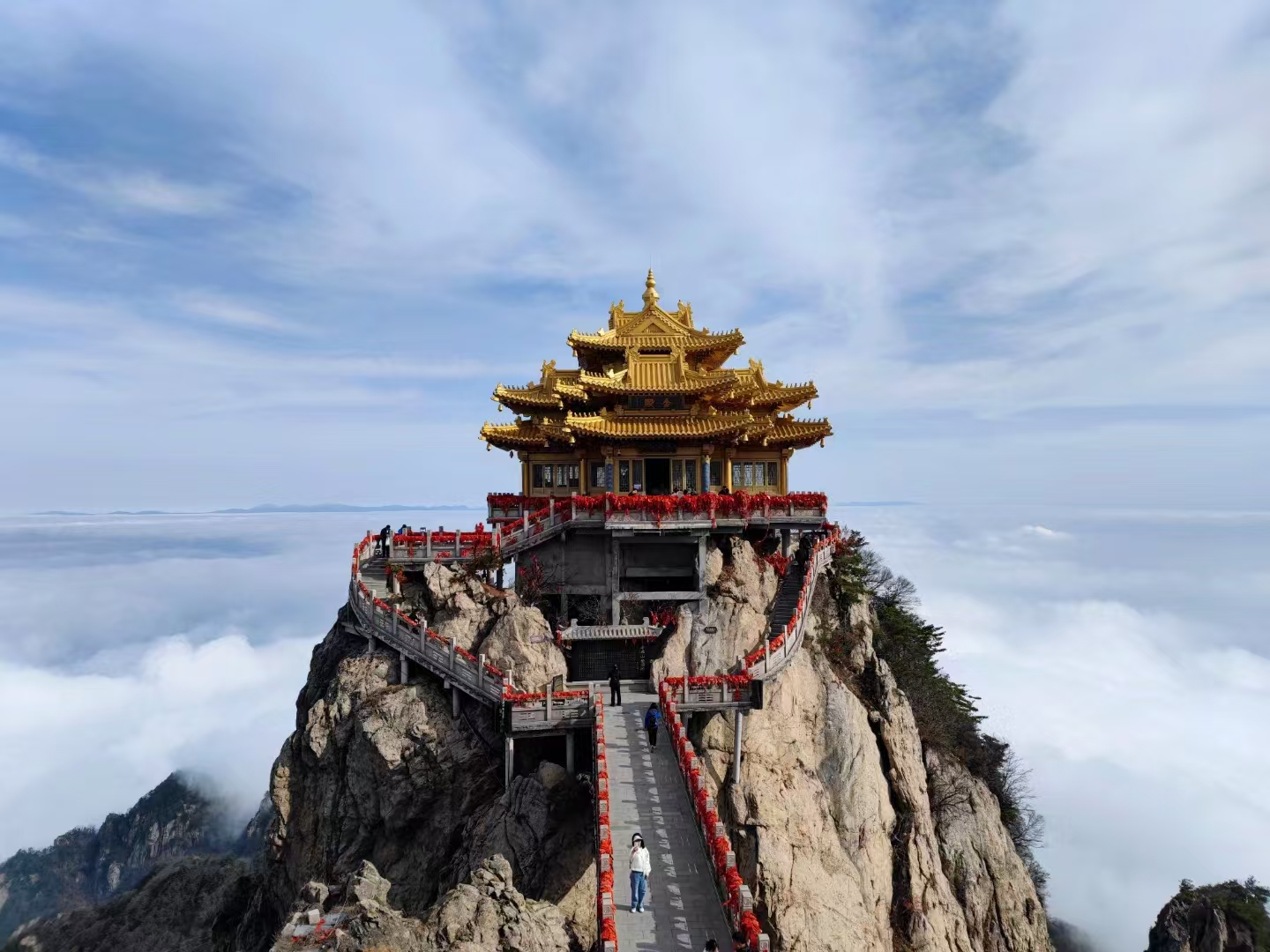 相传东周道家始祖老子曾在此山隐居修炼,故名老君山,是伏牛山主峰。海拔两千多米,有官殿及庙宇群落,古时这里被视为道教圣地。景区还有老子骑牛像和太上老君金像等当地著名标志物。
