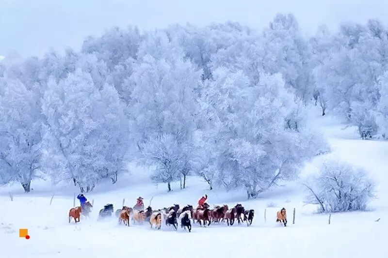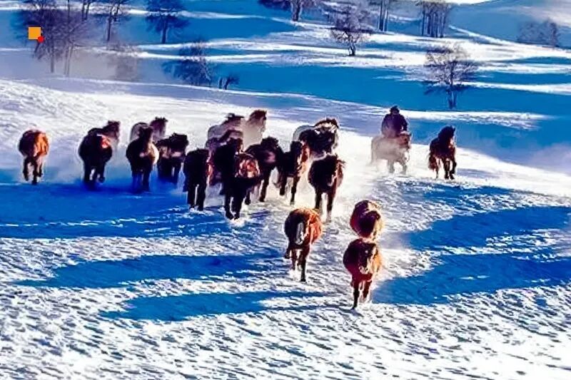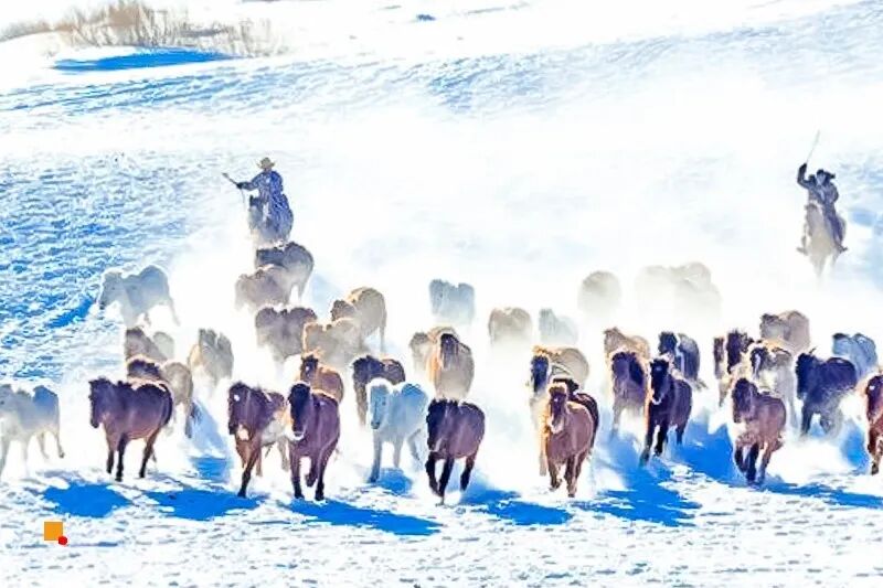 奔驰的骏马,驰骋在皑皑白雪的大草原,