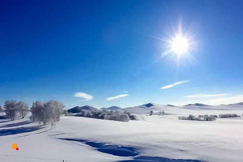 冬季洁白的雪布满了草原,