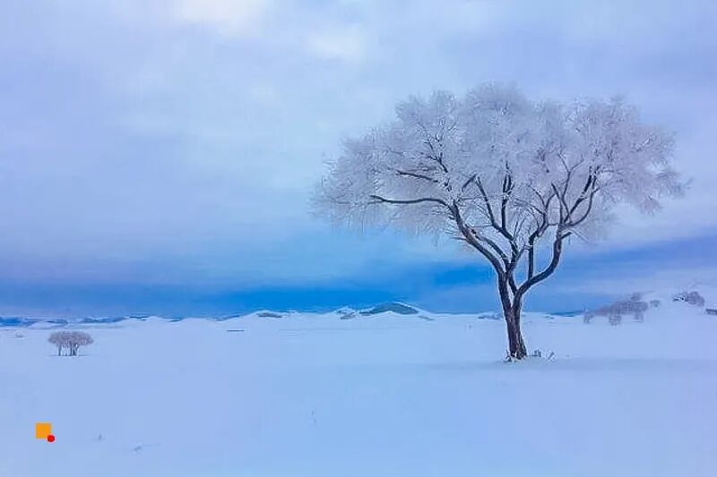 雪色银花就覆盖了乌兰布统草原。