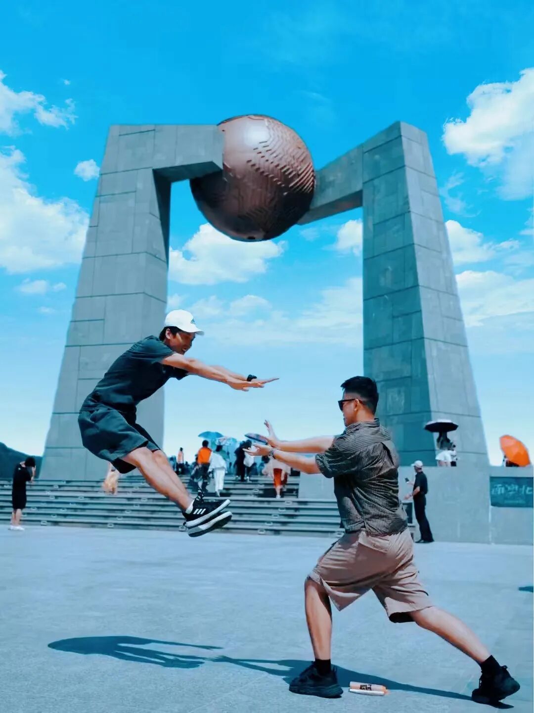 随后【北回归线广场】矗立着北回归试标志塔“自然之门”,它是迄今为止我国建成的第十一座北回归线标志塔。该塔设计采用了汉字“门”字进行演变造型,门型中有一个球体,每年的夏至正午,当太阳直射北回归线时,日影将会穿过上方圆球中心圆管,投射到地台中央。大人和小朋友在这边留下美好合影。