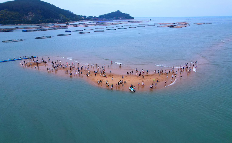 早餐后前往【鱼骨沙洲】,隐藏于海水之下的一片沙洲,每天随着退潮限时“开放”因形状细长像鱼骨而得名,面积据说有500多亩具体通往何处不得而知,在海水交织的尽头,可以拍出踏浪而行的大片,推荐带无人机从上帝视角来欣赏,前往沙洲的路上乘快艇,路过海产养殖场也是很有趣的经历。