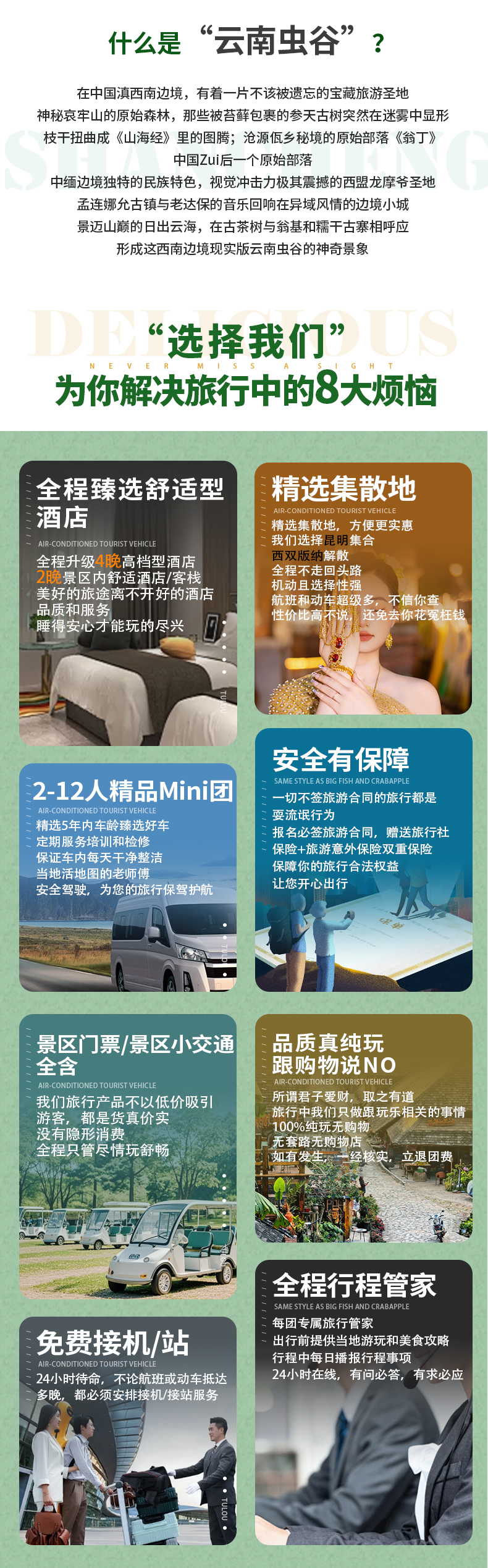 ▷交通:不包含各地抵达昆明集散的往返大交通费用(如:机票和高铁票等,提前预定通常折扣都会很低);