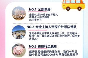 2)活动行程时间仅供参考,受天气、交通、客流量、景区或政府调整等影响有可能会发生变化,请以领队实际安排为准;文中照片仅供参考,不做为本次活动要约;户外活动不同于常规旅行活动,报名时未成年人、60周以上老年人、残疾人、孕妇、患者、港澳台和外籍人士报名需报名时说明,领队有挑选队员的权利。