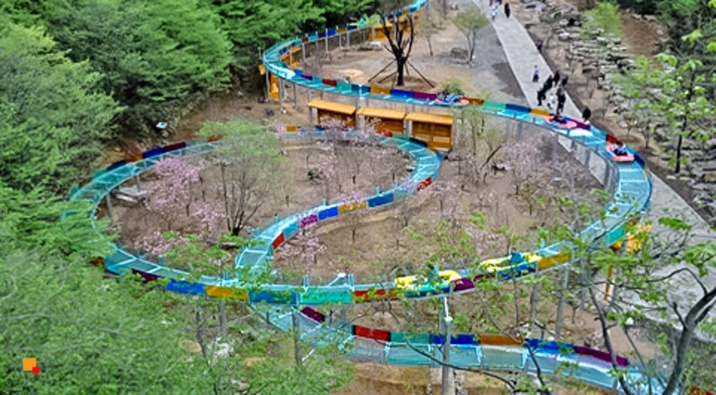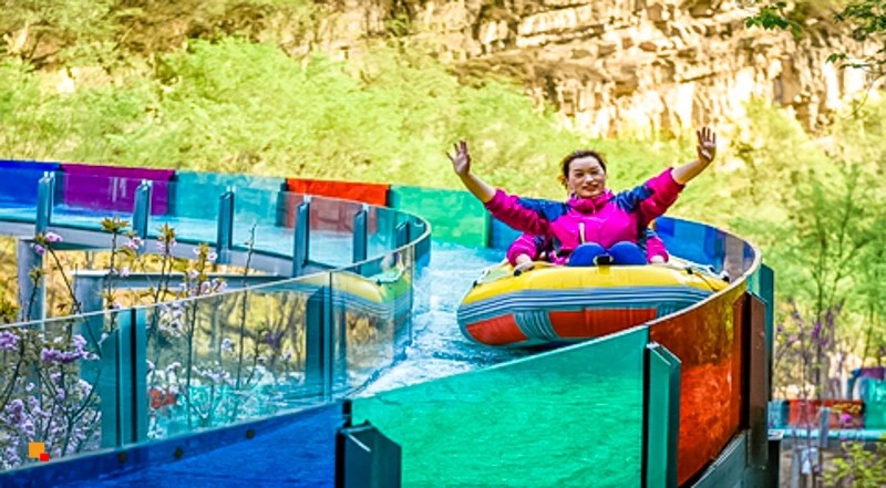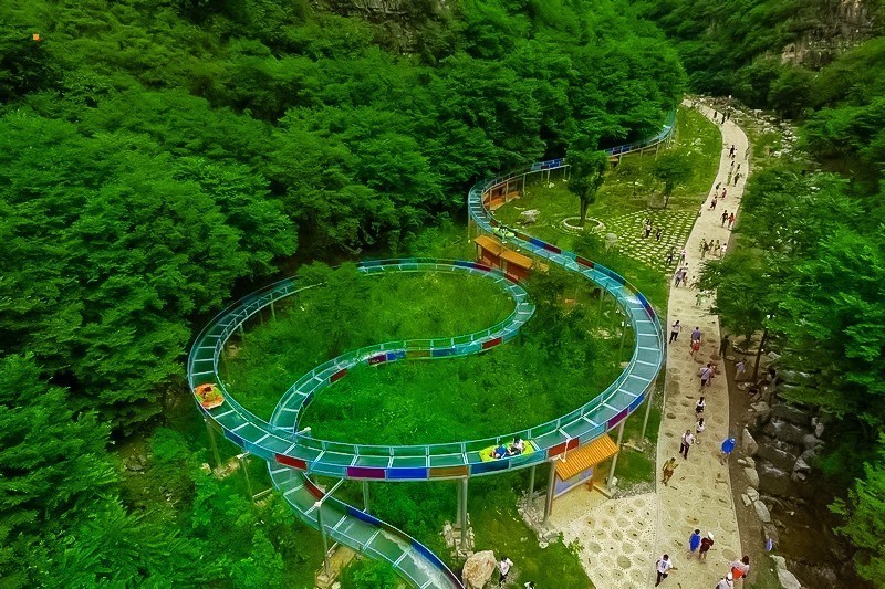 高山漂流,其独特之处在于巧妙的利用了自然风光,并增添了潮流的浪漫与刺激元素。项目全长1600米,分三小段,中间停留两次,需要工作人员用钩子推一下漂流筏。真的好刺激啊,漂流筏在轨道里高低起伏,左右碰撞、呼啸而下,其惊险与刺激程度保准让您眼界大开,流连忘返。此刻已全身湿透,热意全无。