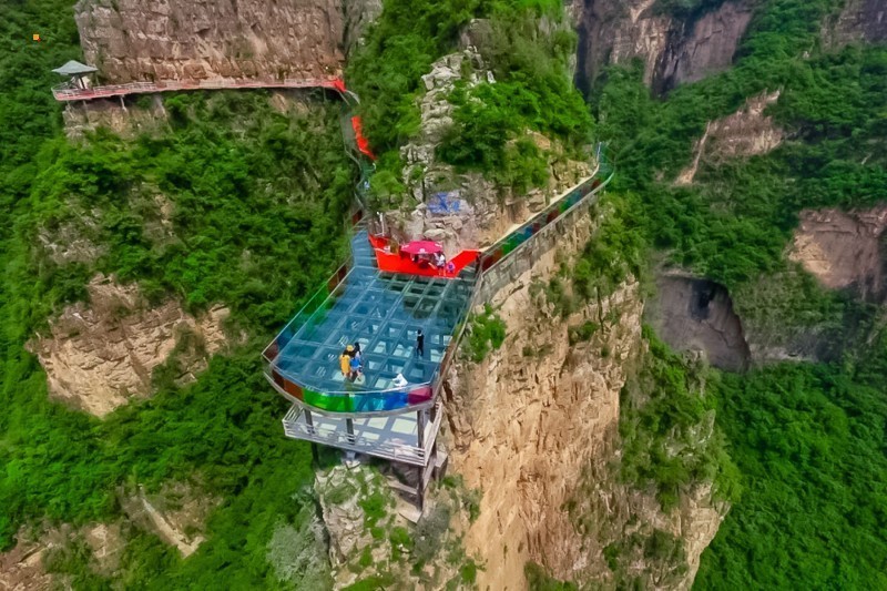 全景玻璃平台依山距险而建,宛如一条神龙之首悄然伏在山颠之上,探出头来,守护群山之安宁与祥和。观览山中有山,虚虚实实,绝壁直立,可谓险阻天成!这里已然成为网红打卡地,你在欣赏美景,又成为别人眼中的风景!