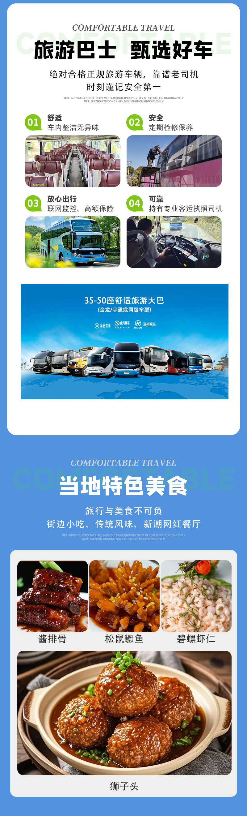 1)交通:全程往返陆地头等舱豪华旅游大巴(2+1座)包车费用及司机食宿费用;