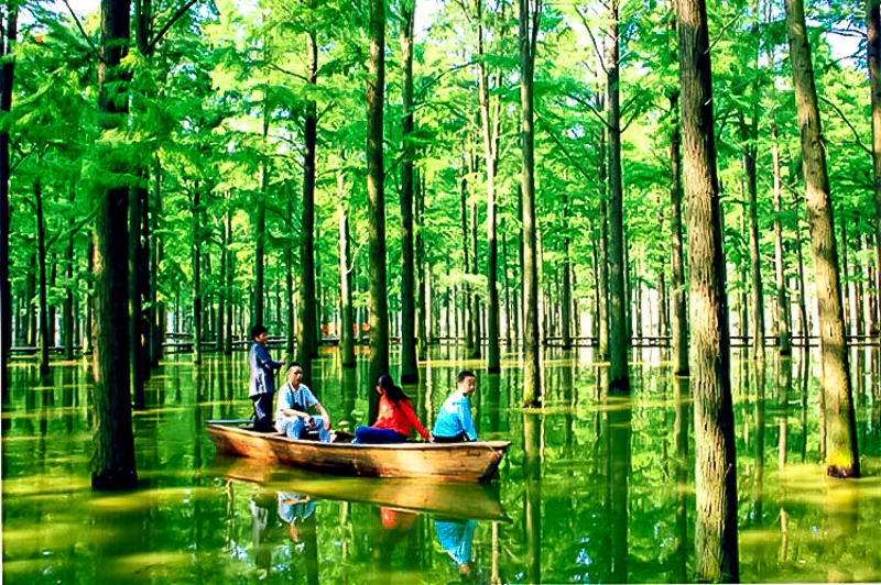 - 下午|游玩李中水上森林,可以乘竹筏穿越水上森林,也可以悠闲地沿湖徒步。(*注:如因交通、兴化客流量等原因,次景点有可能取消直接前往扬州!)
