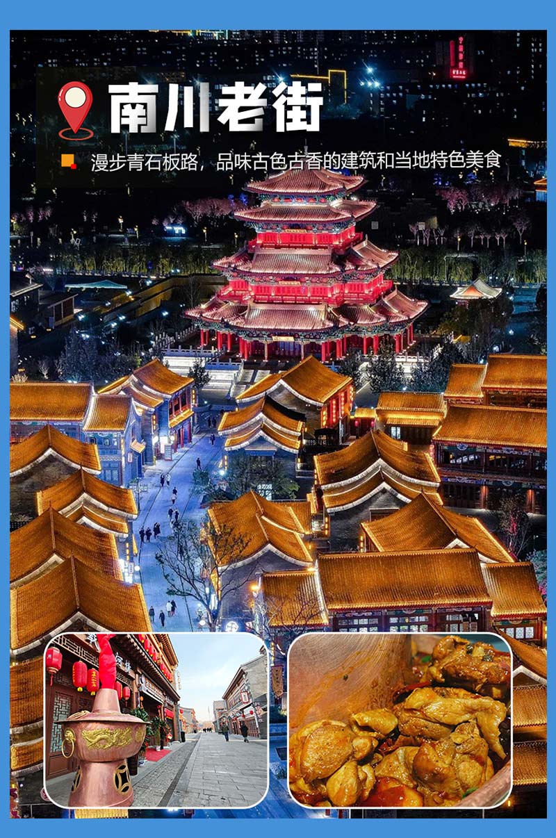 - 适时集合,我们前往【南川老街】游览夜景,寻觅美食;或者前往京杭大运河游船——【在运河船上涮火锅鸡】,登仿古画舫船,红油铜锅直接架桌沸腾,鸡块裹满辣汁越煮越香!
