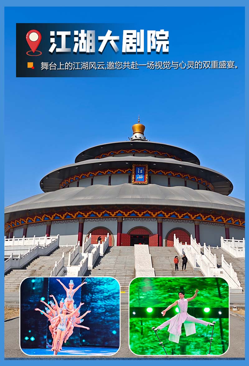 带你穿越时空,走进刀光剑影的江湖世界!这里以精彩的舞台表演、逼真的场景布置和互动式体验,还原了武侠小说中的经典场景和人物。你可以化身侠客,参与剧情发展,体验快意恩仇的江湖生活;也可以作为观众,欣赏演员们精湛的演技和震撼的舞台效果。江湖大剧院,不仅是一场视听盛宴,更是一次难忘的江湖之旅,让你亲身感受武侠文化的魅力!