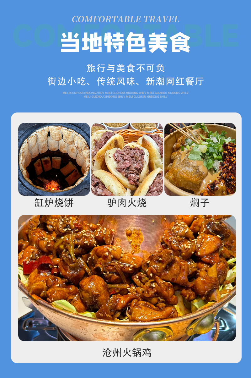 1)用餐:除住宿酒店早餐外,其它用餐自理或AA聚餐(画舫船火锅鸡40-60元/人,提前预定),当地用餐很方便;
