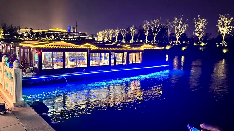 乘古风画舫夜游运河,边涮沧州特产麻辣火锅鸡,边看两岸灯光秀穿越明清码头。“当麻辣鸡香混着水汽扑进鼻腔,运河的风吹散铜锅白烟,此刻才懂——沧州的江湖气,一半在镖局,一半在船上”