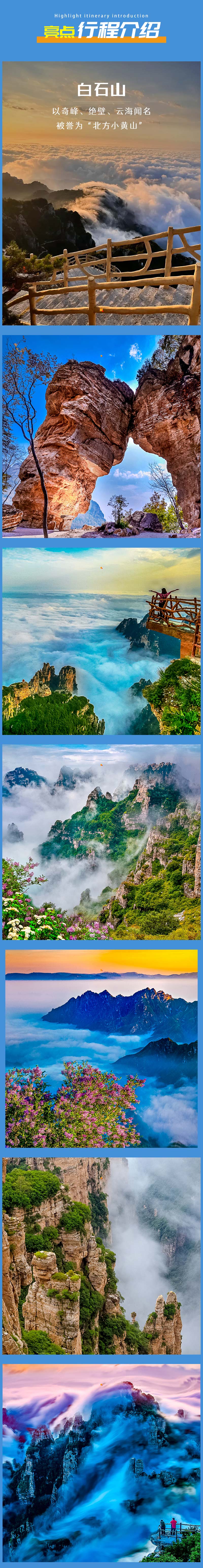 - 今天我们早些出发上山,大概率能看到云海,大家乘坐缆车/摆渡车(二选一)到达山顶,开始徒步游览白石山,赏太行之首美景,看奇山怪石,中午云间午餐时间,尽情享受;下午继续欣赏美景,喜欢摄影的尽情创作,三步一景,五步成诗,十步入画,百步不胜在人间。