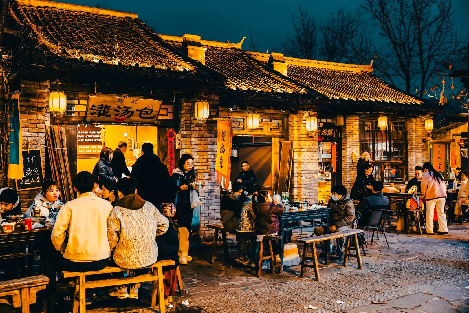 太行水镇整体建筑为传统的青砖、黛瓦、黄土墙,分小吃、作坊、院府、农耕等街区,品地道小吃、游太行美景、购农副特产、体农作生活、赏乡村民俗。太行水镇用朴素的太行建筑,简约的太行生活,浓浓的讲述了一个都市人向往的、乡情乡土的乡村故事。大家在此晚餐,品尝各种特色小吃。