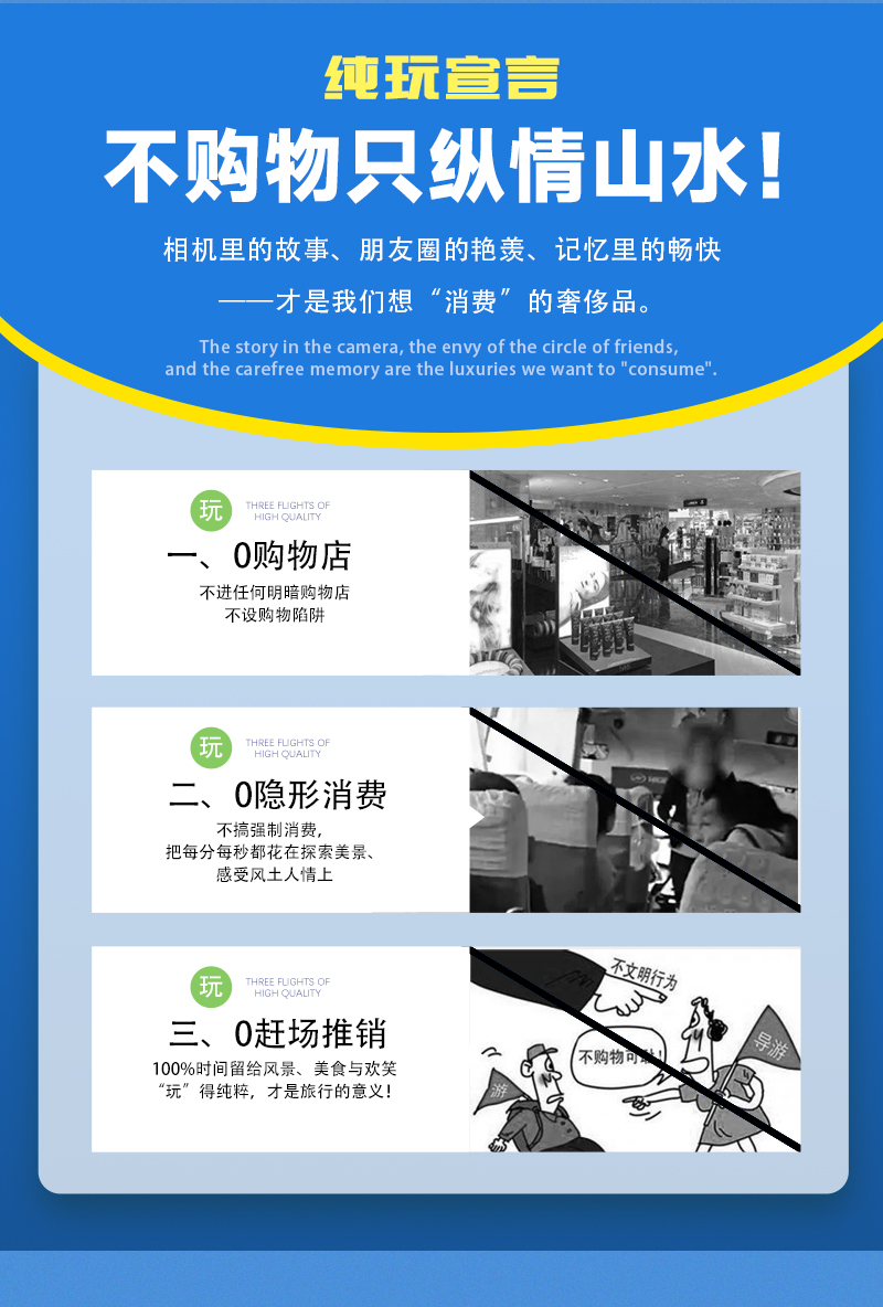 1)本活动属于户外旅行活动,纯玩,全程不进购物店,没有任何形式购物环节,领队也不作购物推荐,敬请谅解;同时本活动所有费用已明示(包括有可能您自愿自费的项目),无其它任何收费,请您仔细阅读费用包含和费用不含内容。