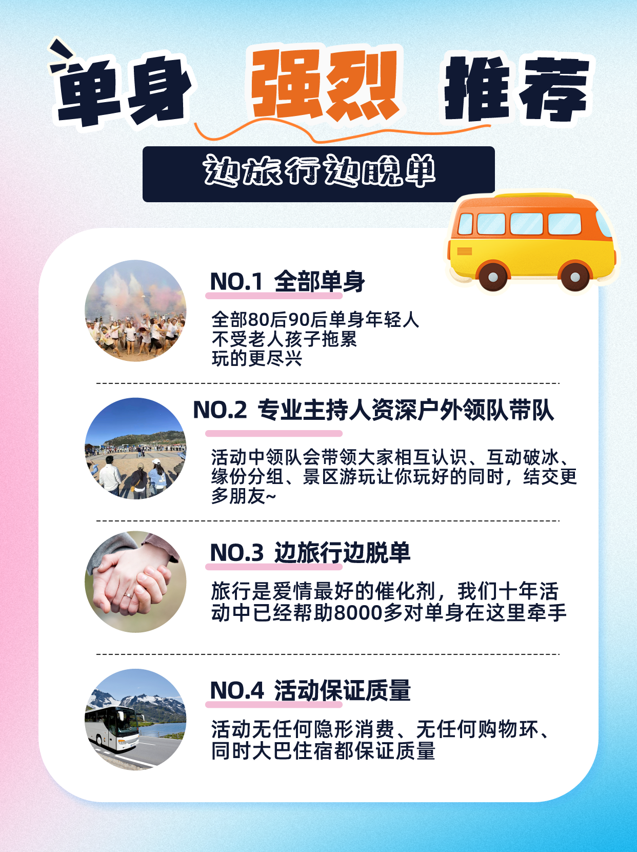 美景是爱情最好的催化剂:带上你喜欢的TA,行程中有中意的对象可随时向领队申请换坐~
