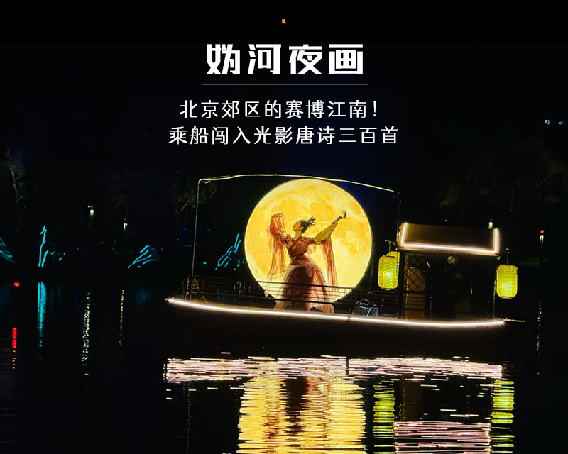 - 晚上前往夏都公园欣赏延庆醉美夜景。大家可以自由欣赏夏都公园夜景,也可以体验震撼的视觉盛宴——“妫河夜画”实景演出(费用自理)。登上游船,随着船只缓缓前行,璀璨的灯光、精彩的表演交相辉映。大家瞪大眼睛,沉浸在这如梦如幻的场景中,近距离感受妫川文化的独特魅力。